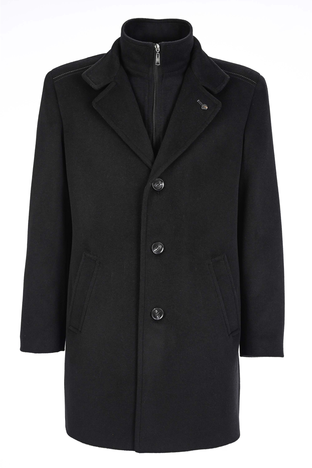 Elegantný vlnený kabát so stojačikovým golierom na zips SLIM STRIH