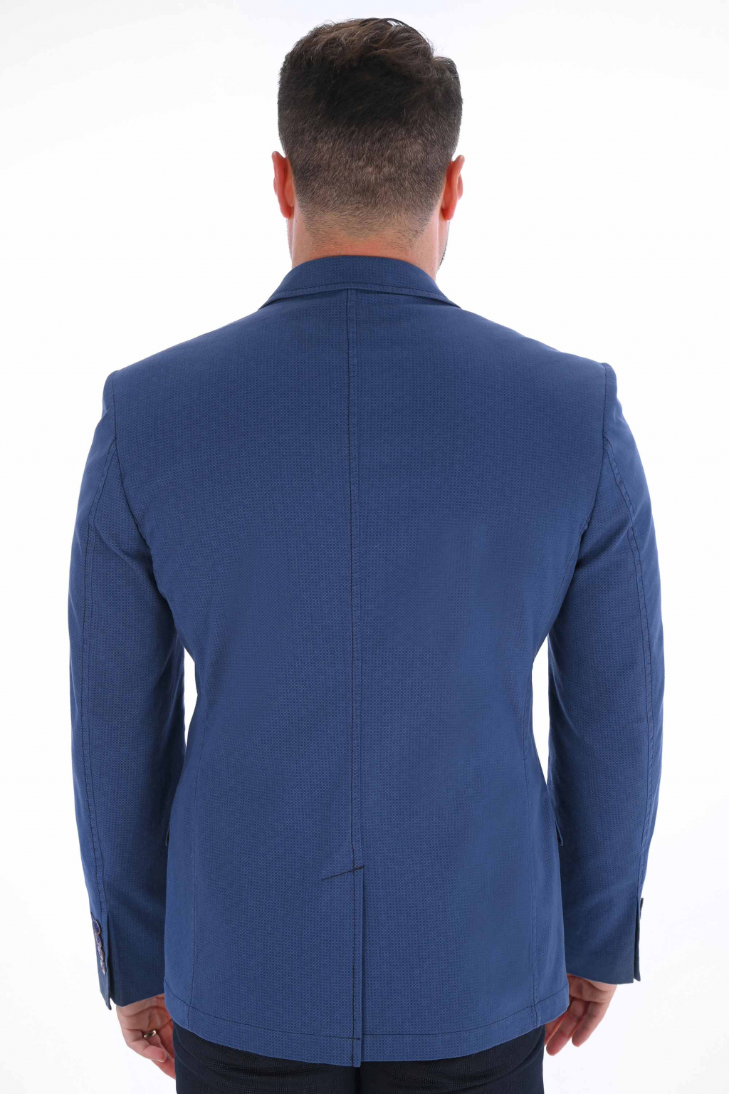 Modré sako s jemným vzorom SLIM STRIH, bavlna stretch