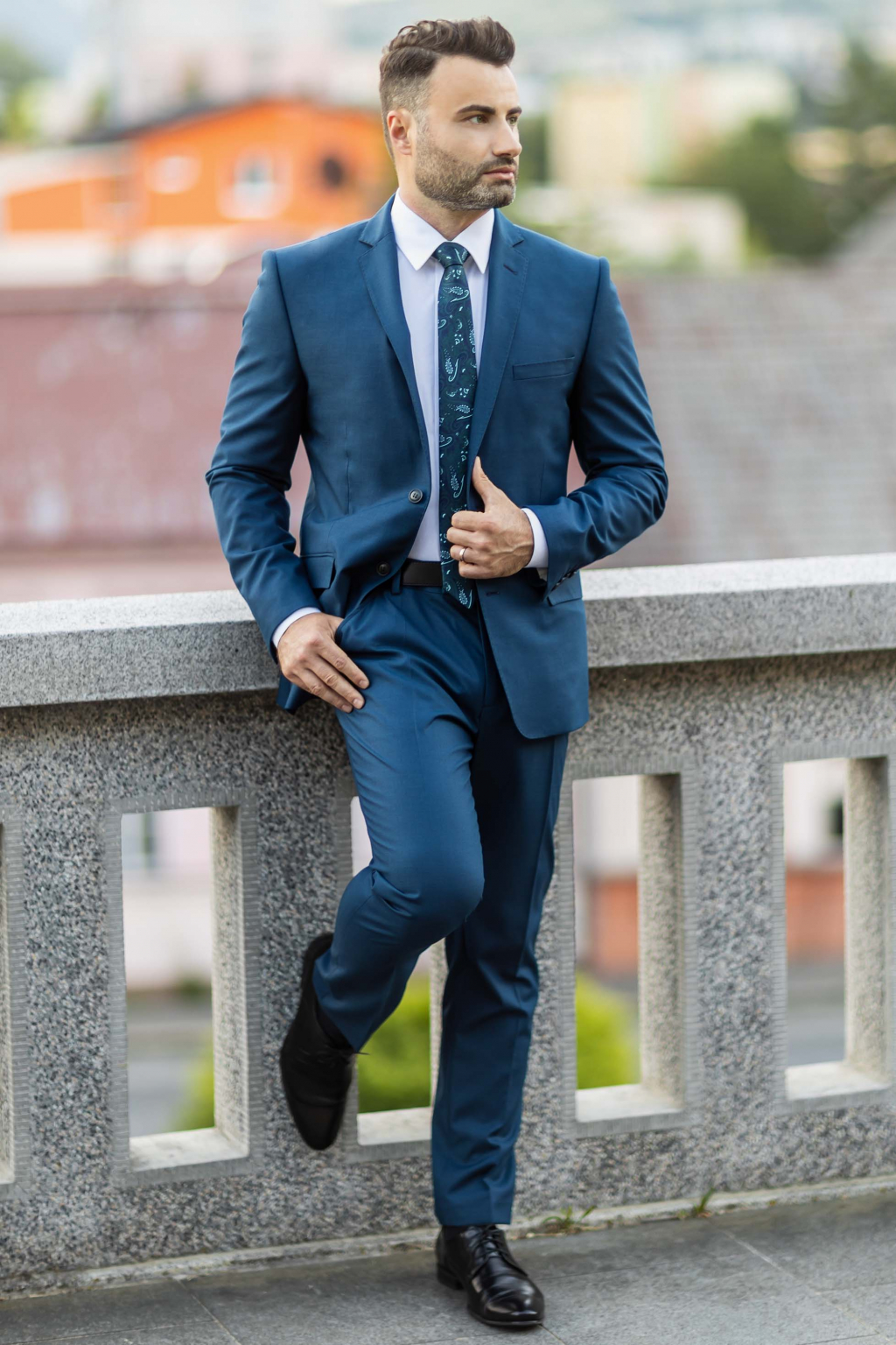 Modro-tyrkysový oblek SLIM STRIH, klasický