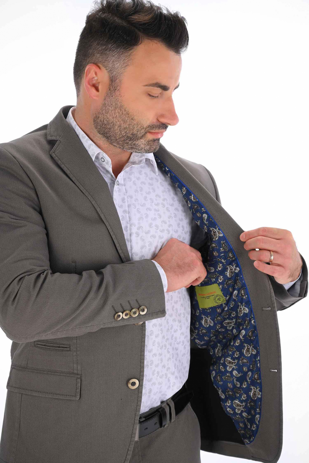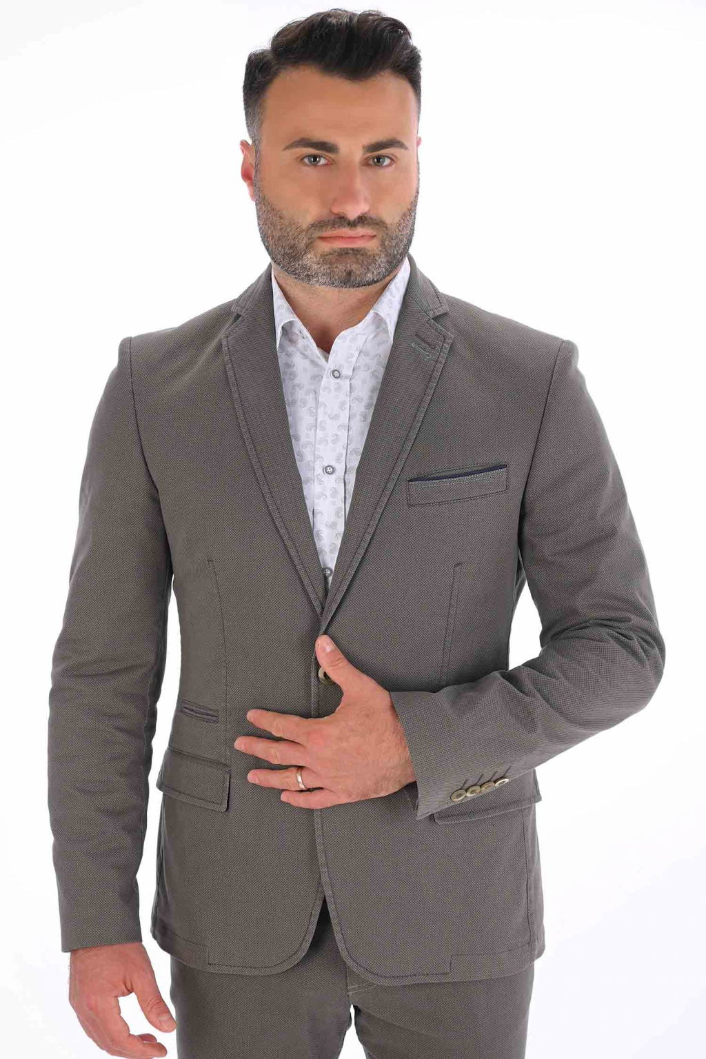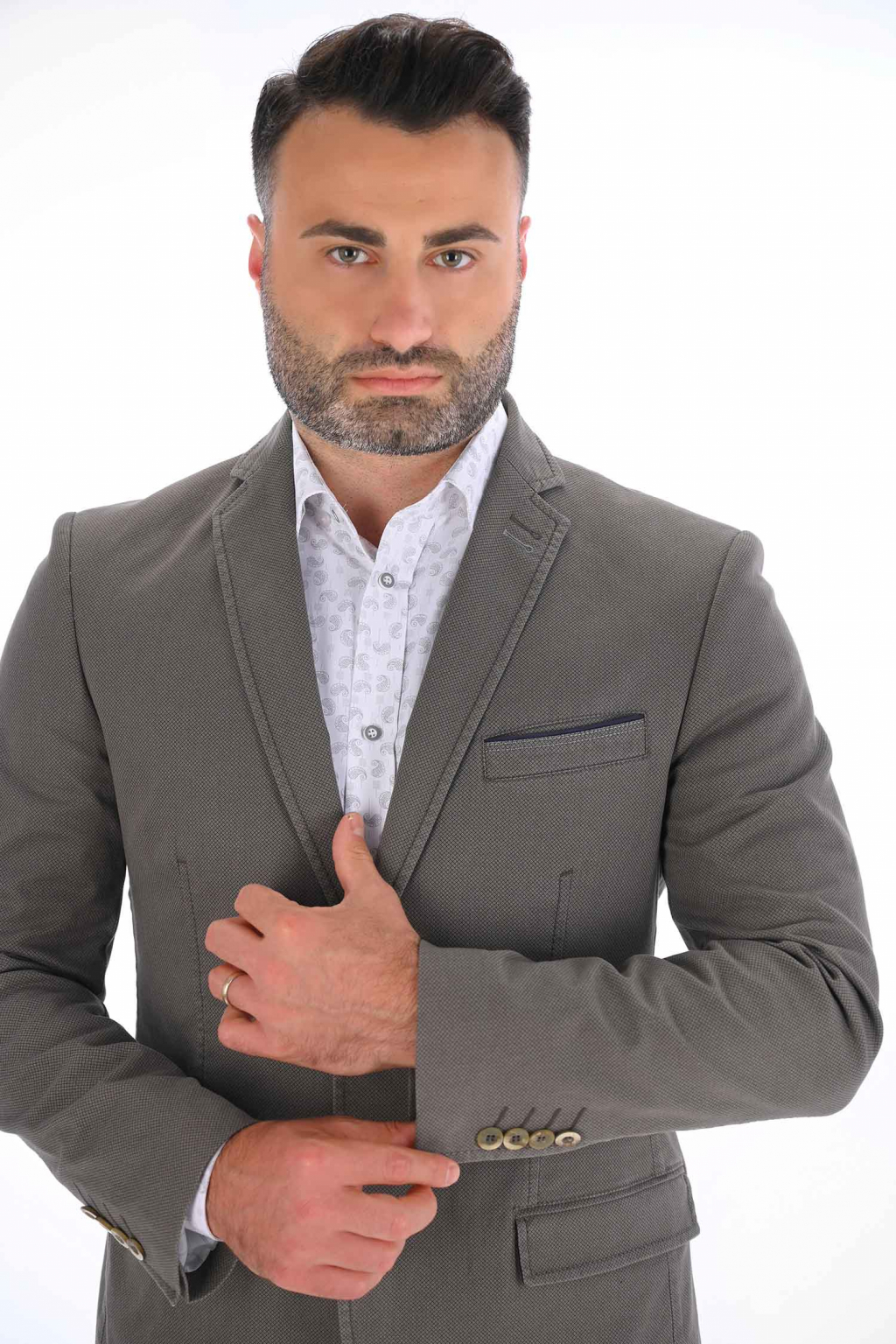Šedé sako s mikrovzorom SLIM STRIH, bavlna stretch