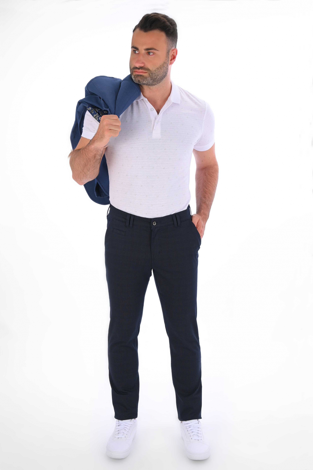 Tmavomodré nohavice -Káro Chinos ULTRA SLIM, bavlna stretch